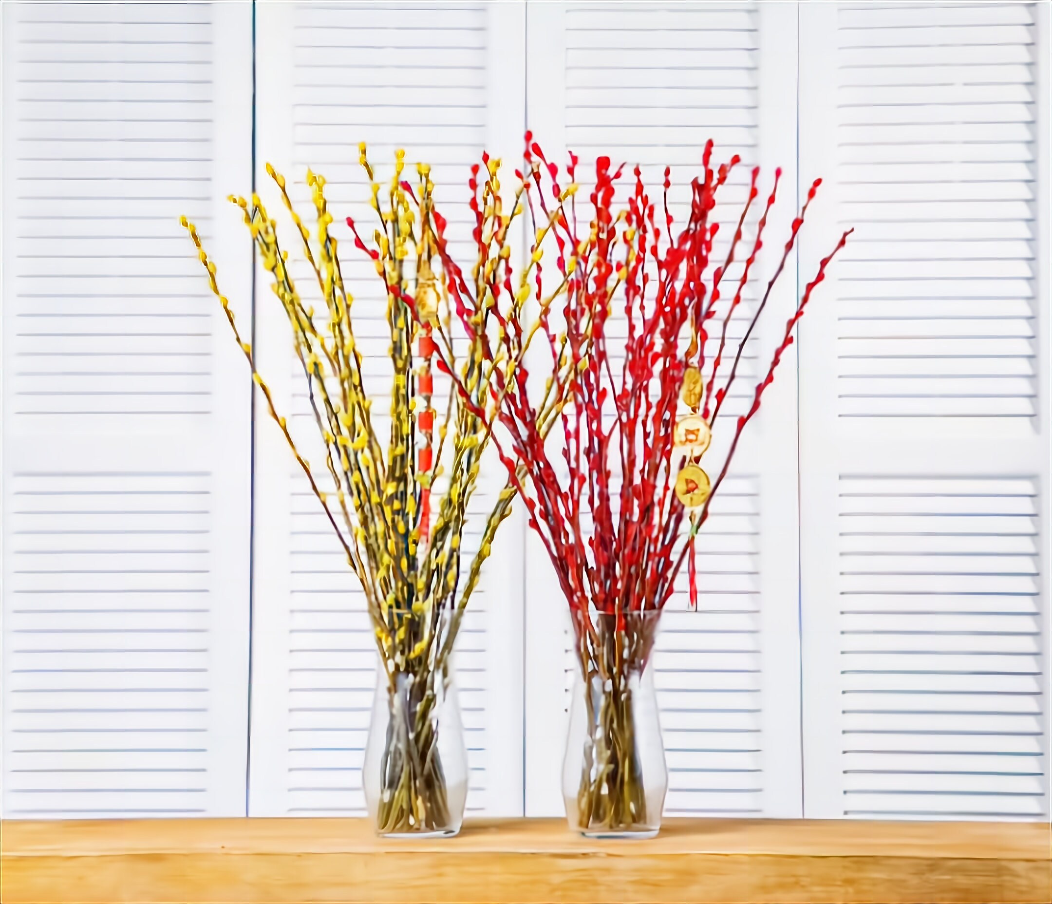 Fresh Pussy Willows | Nu Tam Xuan Fresh in Yellow OR Red | Tet Holiday| Vietnamese New Year Decor (20 Stems/Bunch) + FREE GIFT
