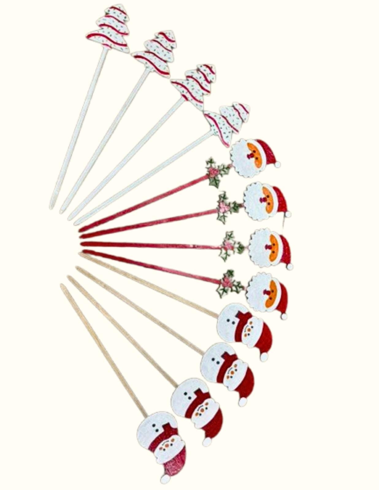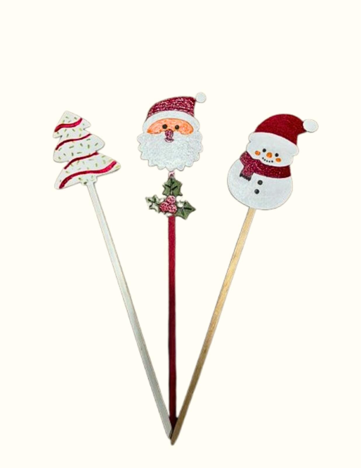 Winter Decoration Centerpiece Sticks l Sign Picks for Flower Arrangement l Xmas Wooden Cake Topper (3"x 15") (PK2025XM)